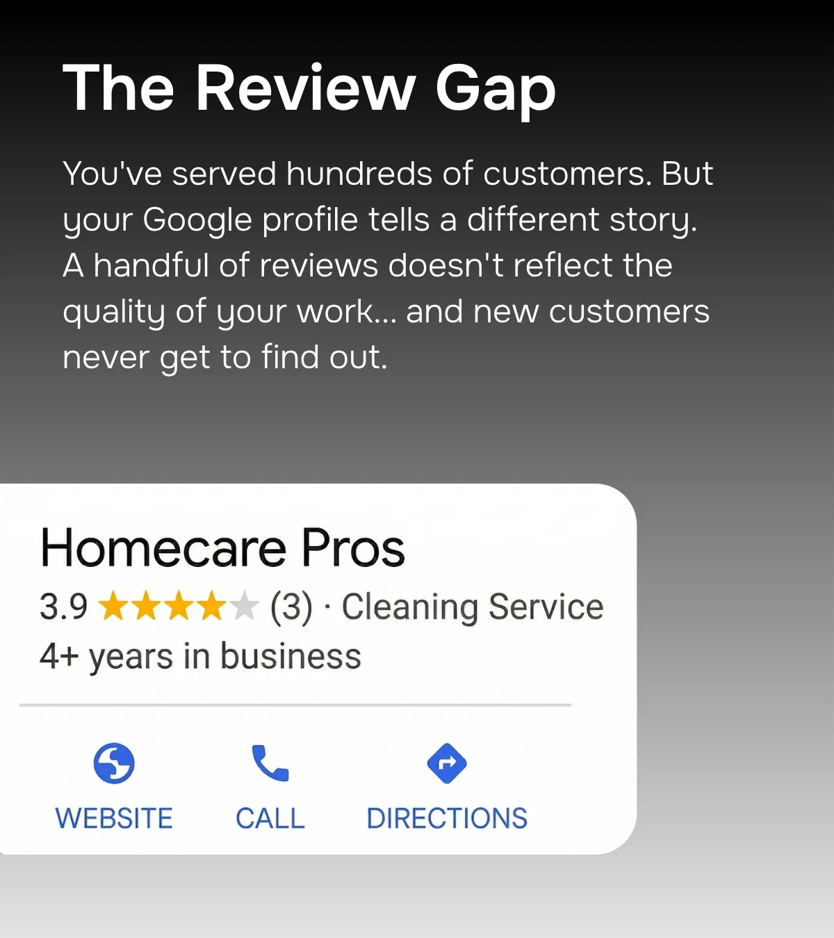 But when someone new searches Google for what you do, they see your competitor with 3X more reviews. And they call them instead.